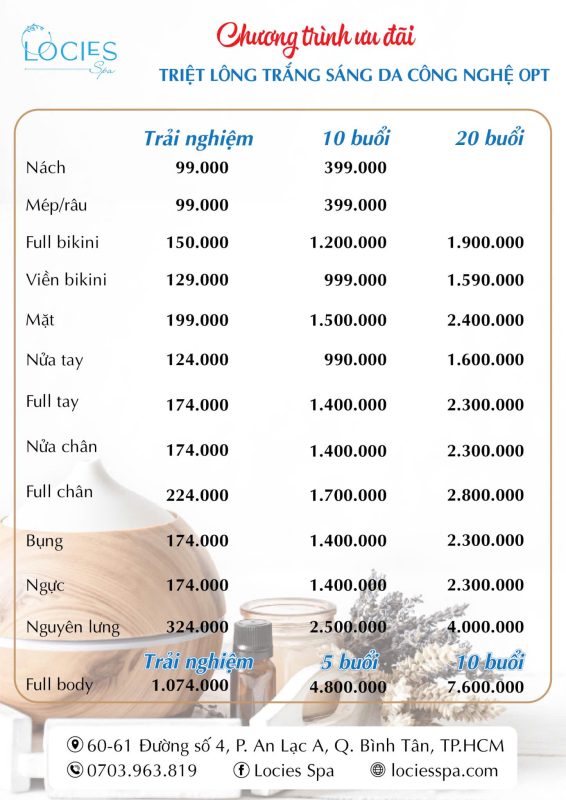 DỊCH VỤ TRIỆT LÔNG TẠI LOCIES SPA